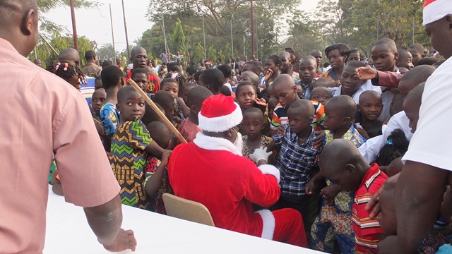Noël c’est la fin des enfants a-t-on l’habitude de dire et en ce jeudi du 25 Décembre 2015 Creuset Togo étaient aux côtés de ses enfants pour leur offrir l’occasion de célébrer la fête de la Nativité comme tout enfant dans le monde entier malgré la situation dans laquelle ils se trouvent.Ils étaient donc une centaines d’enfants venus de plusieurs quartiers de la ville de Sokodé associés aux pensionnaires du centre de transit de l’ONG Creuset Togo. Tous réunis sur le terrain de tennis de l’hôtel central de Sokodé, transformé pour l’occasion en place de réjouissance en l’honneur de ces enfants.